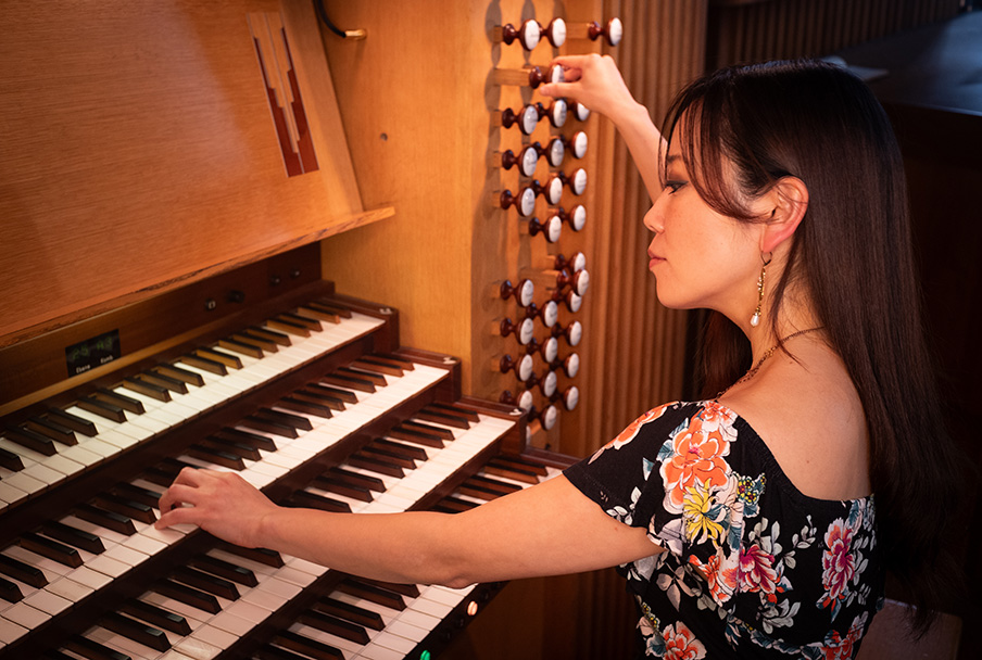 Megumi Hamaya, die aus Japan stammende Orgelvirtuosin, begeistert mit ihrer technischen Brillianz und ihrem feinsinnigen farbigen Spiel.